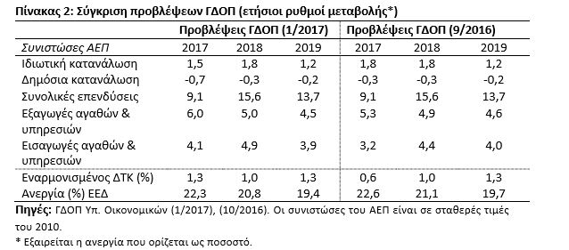 Στην έκθεσή του τονίζει μεταξύ άλλων πως οι καλύτερες των αρχικών προβλέψεων επιδόσεις του 2016 θα έχουν θετικό αντίκτυπο και το 2017. Παρόλ’ αυτά, όπως υπογραμμίζει, ο στόχος για αύξηση του ΑΕΠ κατά 2,5% κρίνεται αρκετά αισιόδοξος.
