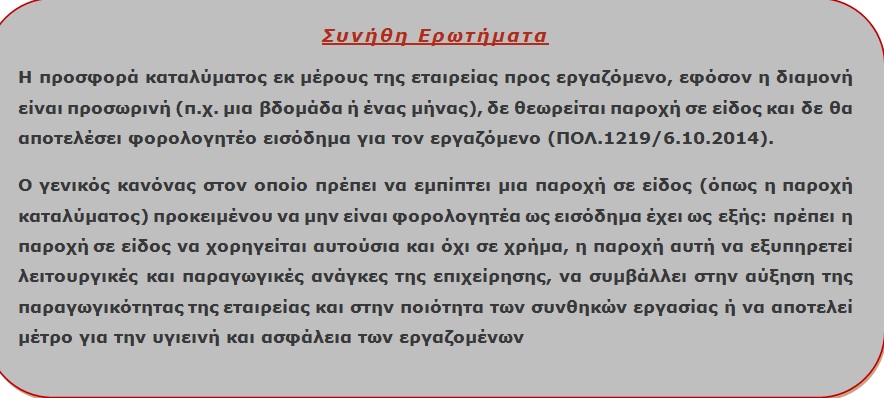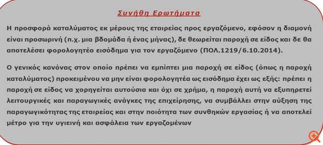 * Αποτελεί παροχή σε είδος και φορολογείται ως εισόδημα η ωφέλεια από χαμηλότοκο δάνειο προς εταίρο, μέτοχο ή εργαζόμενο: Οι παροχές σε είδος με τη μορφή δανείου, προς εργαζόμενο ή εταίρο ή μέτοχο από ένα φυσικό ή νομικό πρόσωπο (νομική οντότητα) περιβάλλονται τη μορφή έγγραφης συμφωνίας και αποτιμώνται με βάση το ποσό της διαφοράς που προκύπτει μεταξύ των τόκων που θα κατέβαλε ο εργαζόμενος στη διάρκεια του ημερολογιακού μήνα κατά τον οποίο έλαβε την παροχή, εάν το επιτόκιο υπολογισμού των τόκων ήταν το μέσο επιτόκιο αγοράς. Σε περίπτωση που δεν υφίσταται έγγραφη συμφωνία δανείου, το σύνολο του αρχικού κεφαλαίου λογίζεται ως παροχή σε είδος. Η προκαταβολή μισθού άνω των τριών (3) μηνών θεωρείται δάνειο.