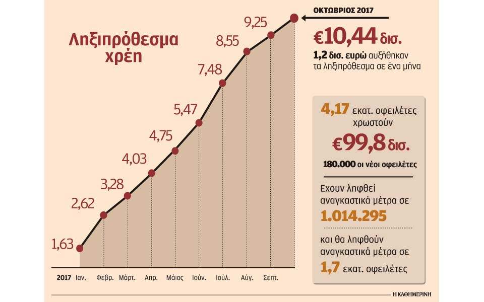 3. Σε 1,014 εκατομμύριο οφειλέτες έχουν επιβληθεί αναγκαστικά μέτρα, δηλαδή κατασχέσεις μισθών και τραπεζικών λογαριασμών. Από τις αρχές του έτους έχουν γίνει 180.000 κατασχέσεις.