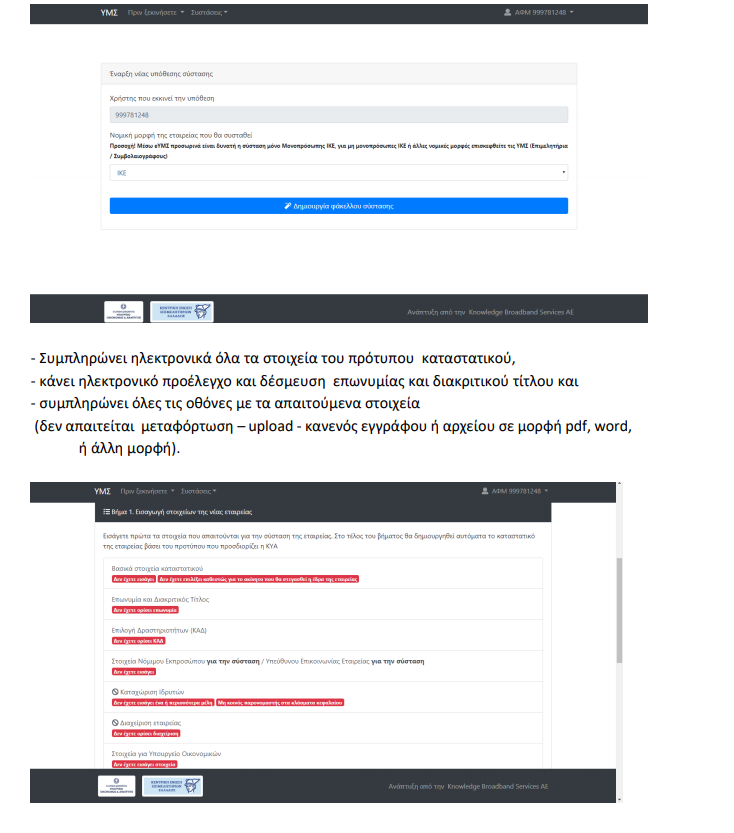 -Η χρήση του είναι υποχρεωτική για σύσταση μέσω e-ΥΜΣ, ανεξαρτήτως εταιρικού τύπου.