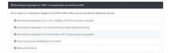 -Χορηγεί αριθμό ΓΕΜΗ και Κωδικό Αριθμό Καταχώρισης (ΚΑΚ) σύστασης