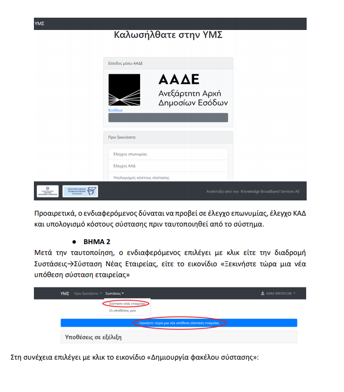 ώστε η εταιρεία να λάβει άμεσα όνομα χρήστη και κωδικό πρόσβασης στο TAXISNET.