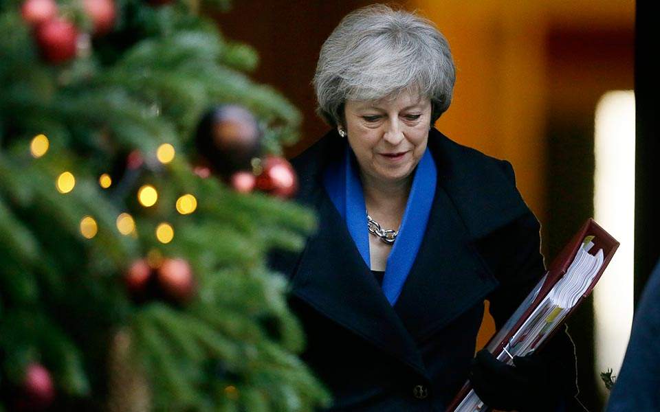 Η πρωθυπουργός Τερέζα Μέι, σε φωτογραφία της περασμένης εβδομάδας, εξέρχεται από την Ντάουνινγκ Στριτ.