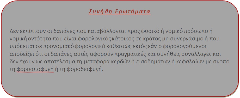 Ωστόσο, εάν η κατά τα άνω διανομή κερδών προκύπτει από συμμετοχή σε άλλο νομικό πρόσωπο, ο φορολογούμενος δεν μπορεί να εκπέσει τις επιχειρηματικές δαπάνες που συνδέονται με τη συμμετοχή αυτή. Στις επιχειρηματικές δαπάνες αυτές περιλαμβάνονται κάθε είδους δαπάνες που συνδέονται άμεσα ή έμμεσα με τη συμμετοχή, όπως, π.χ. οι τόκοι ενδοομιλικού δανείου κατά το μέρος που διατέθηκε (μετά την 1.1.2014) για την εξαγορά θυγατρικών εταιρειών, καθώς και οι τόκοι τραπεζικού δανείου κατά το μέρος που αυτό διατέθηκε (μετά την 1.1.2014) για την αποπληρωμή του πιο πάνω ενδοεταιρικού δανείου (Βλ. και εγκύκλιο Ε.2088/2019 - Συμπλήρωση της ΠΟΛ.1039/2015 εγκυκλίου αναφορικά με την εφαρμογή των διατάξεων της παρ. 4 του άρθρου 48 του ν.4172/2013).